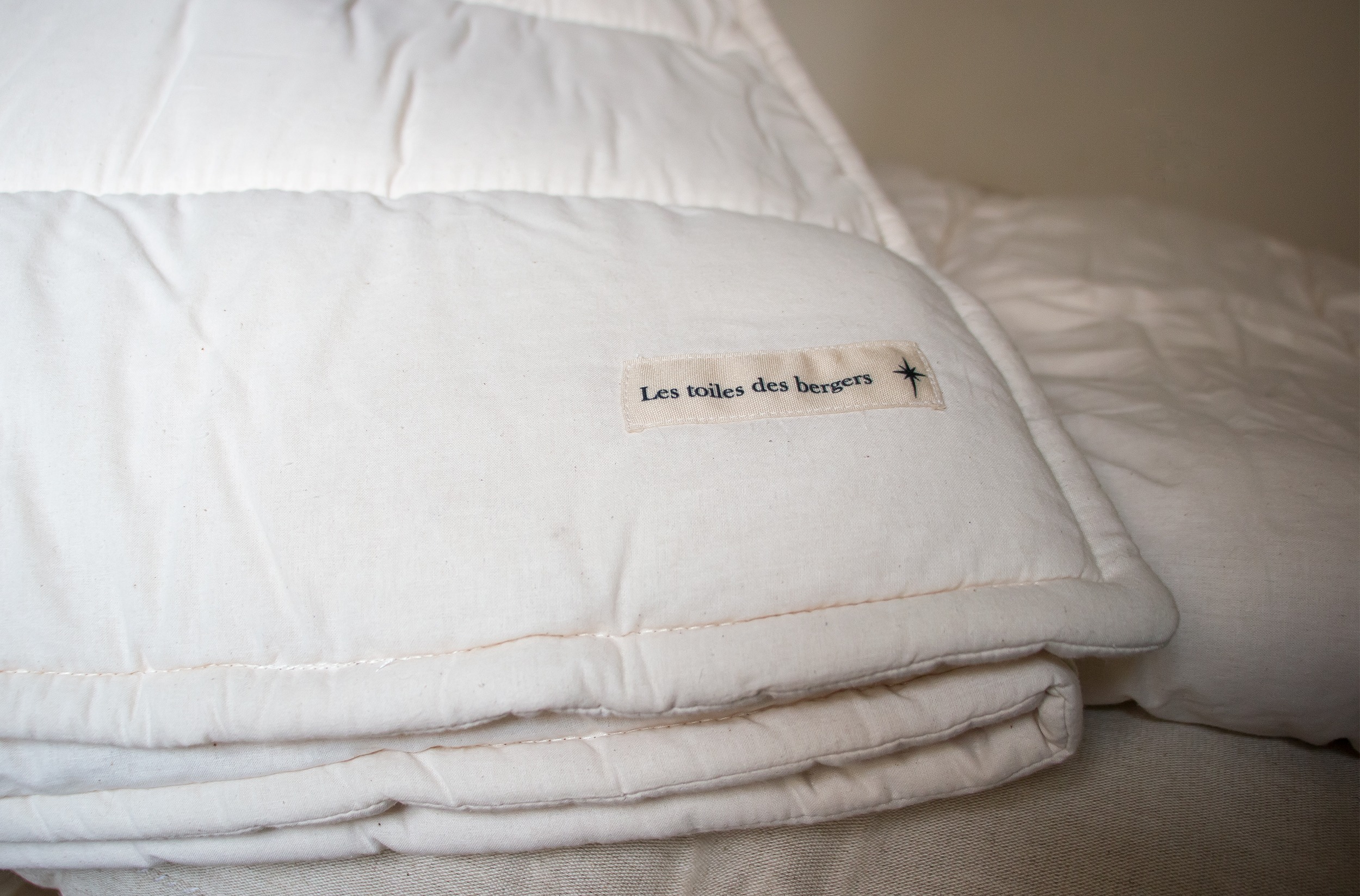 Je fais le choix de matières simples, nobles et authentiques, sans fibres synthétiques, pour vous proposer une couette durable, naturelle et respectueuse du confort de vos nuits.